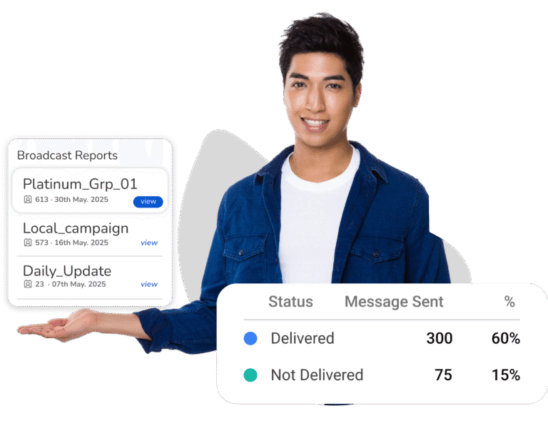 Send WhatsApp messages to thousands in seconds. Just upload your list, broadcast, track results, and repeat. No tech headaches, no cost to start.