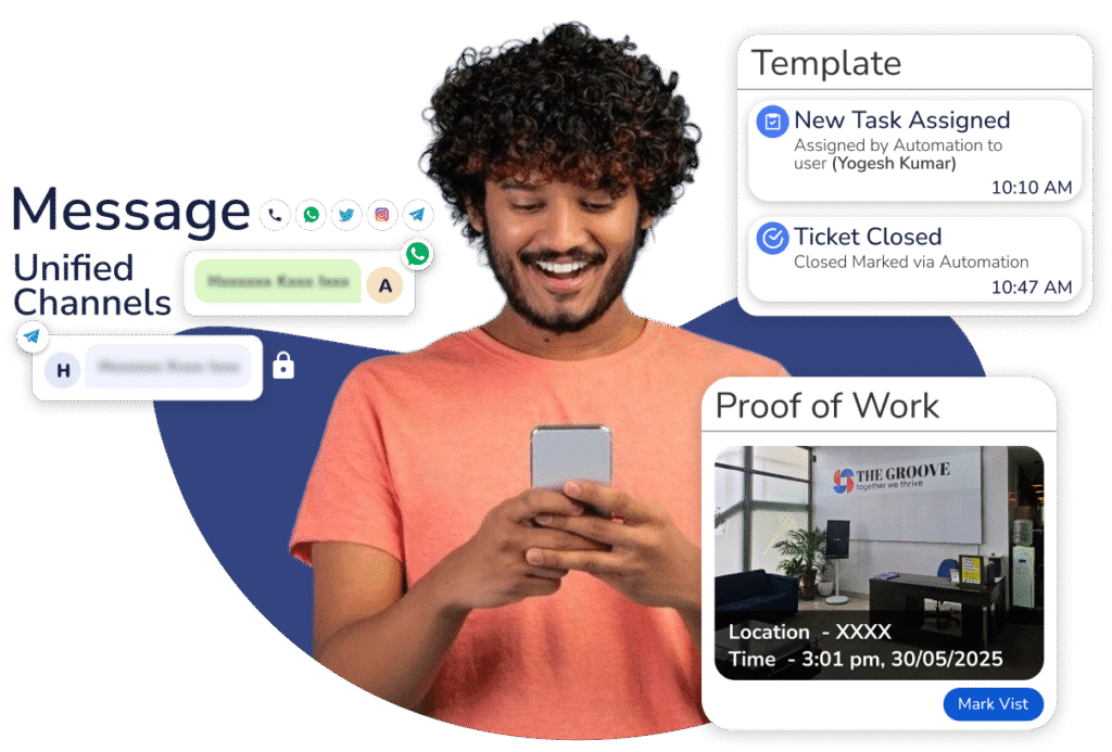 📱 In-App Updates – Teams upload photos, update status & collect digital sign-offs.